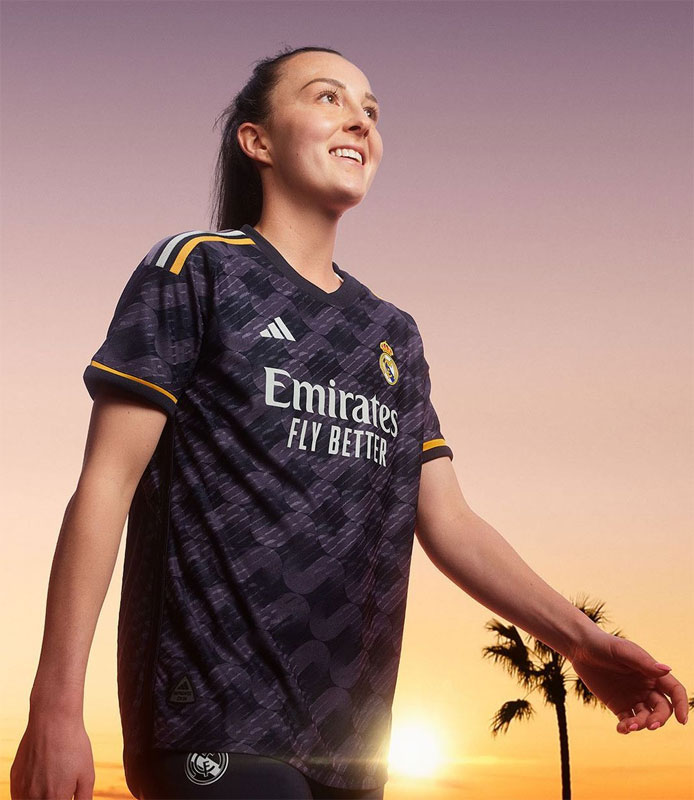 シャツを覆い尽くす今回のグラフィックはマドリディスタ(サポーター)にインスパイアされたもので、8の字のようなインフィニティ(無限)ロゴマークを描く。