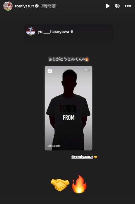 冨安からのメッセージに長谷川は「ありがとう、とみくん」と反応!