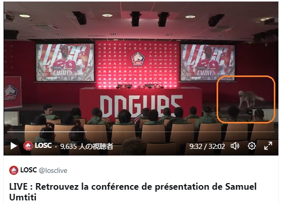 ウンティティはオリヴィエ・レトン会長とともに会見に臨んだのだが、会見場にかわいい乱入者が現われ、笑いを誘っていた。