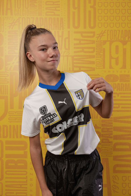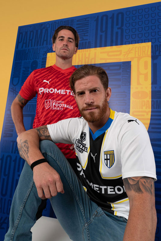1913年に誕生したパルマは2023年で創設110周年を迎える。それを祝したものでもある23-24新ホームユニフォームは、クラブの公式オンラインストア販売中。