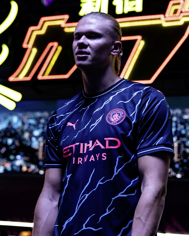 ジャック・グリリッシュ、アーリング・ハーランド、そして新加入マテオ・コヴァチッチが参加した今回のビジュアル。撮影場所は東京・新宿の歌舞伎町にある話題のフードスポット『新宿カブキhall~歌舞伎横丁』で行われた。