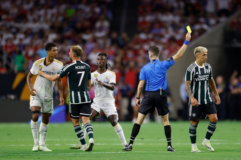 42分にベリンガムが中盤でボールを受けた際、背後からマンチェスター・ユナイテッドDFリサンドロ・マルティネスのタックルを受けたのだ。
