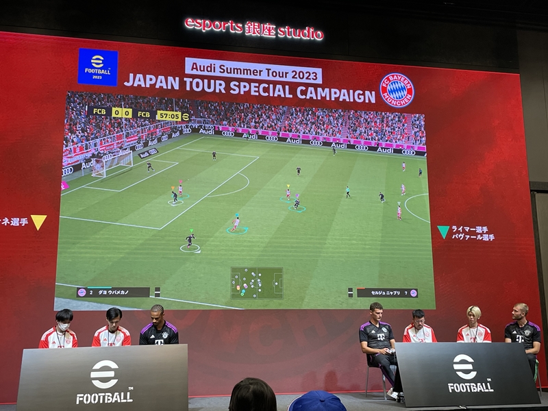 彼らとオフィシャルパートナーシップを結んでいるKONAMIは27日、バイエルンの来日に伴い、人気ゲーム『eFootball™ 2023』の協力プレイモードを使ったスペシャルマッチを本社にある「esports 銀座 studio」で開催した。