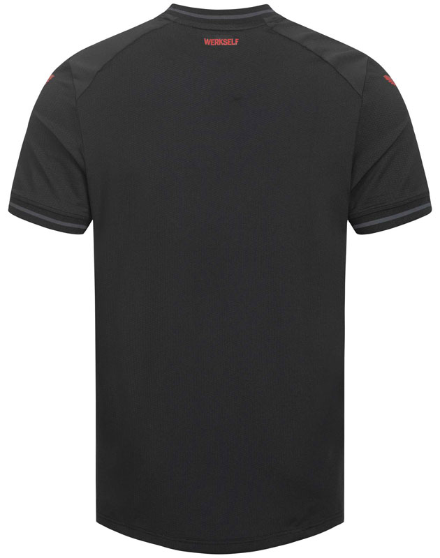 23-24新ホームユニフォームは、ブラックを基調にレッドクロスを大胆に配置する。クラブ史上初となる十字デザインは、“クラブのルーツ”がどこにあるのかを明確に示したもの。エンブレムも含めてブラックとレッドのカラーリングが格好よい。
