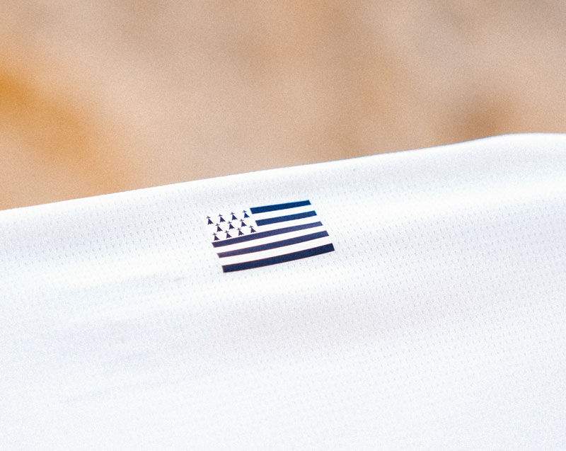 背面の首元にはブルターニュの旗をプリント。この旗がアウェイユニフォームの白黒デザインのベースとなっている。レンヌのユニフォームではお馴染みの旗・デザインだが、これは一体どのような意味を持つものなのか。