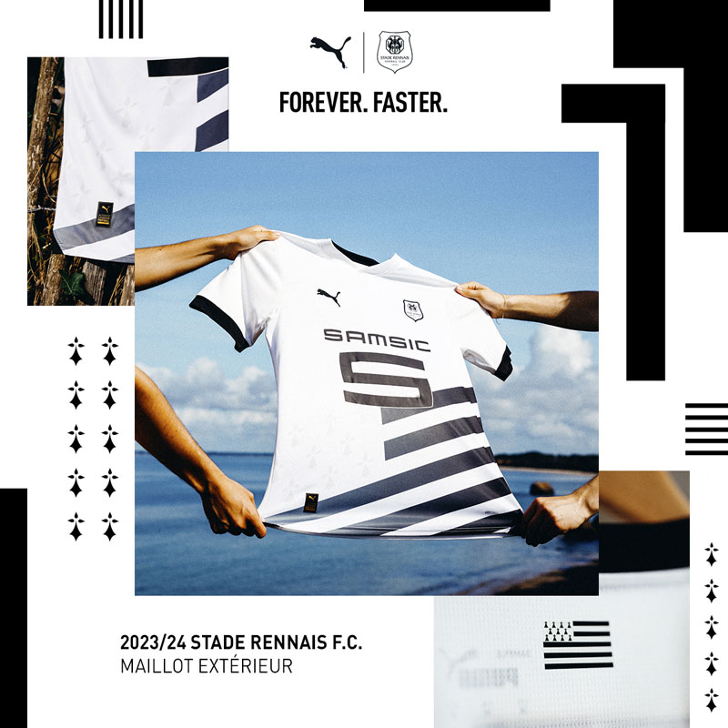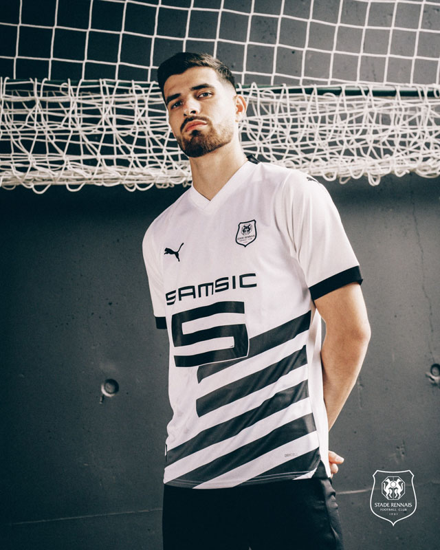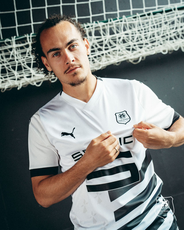 アウェイユニフォームには旗の9本線を走らせ、左側にアーミンを薄っすらと描く。旗そのもののデザインは端的に言うならブルターニュへの忠誠心・帰属意識やクラブのアイデンティティを表現したもので、レンヌをはじめ地域に敬意を表している。