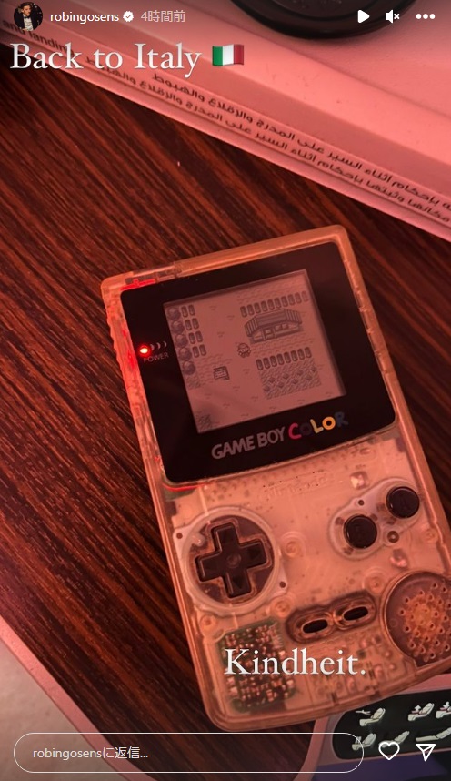 「イタリアに帰国」「少年時代」というキャプションとともに写っていたのは、ゲームボーイカラー。1998年に任天堂が発売した懐かしのゲーム機だ。
