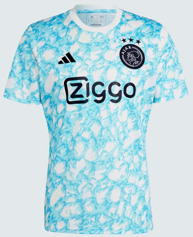 ユニフォームではないのだが、あまりにも冷ややかで涼しげなデザインなのでご紹介。選手たちが試合前に着用するプレマッチトップで、グラフィックはアムステルダムの運河や水路に着想を得て“水の流れ”を表現したもの。