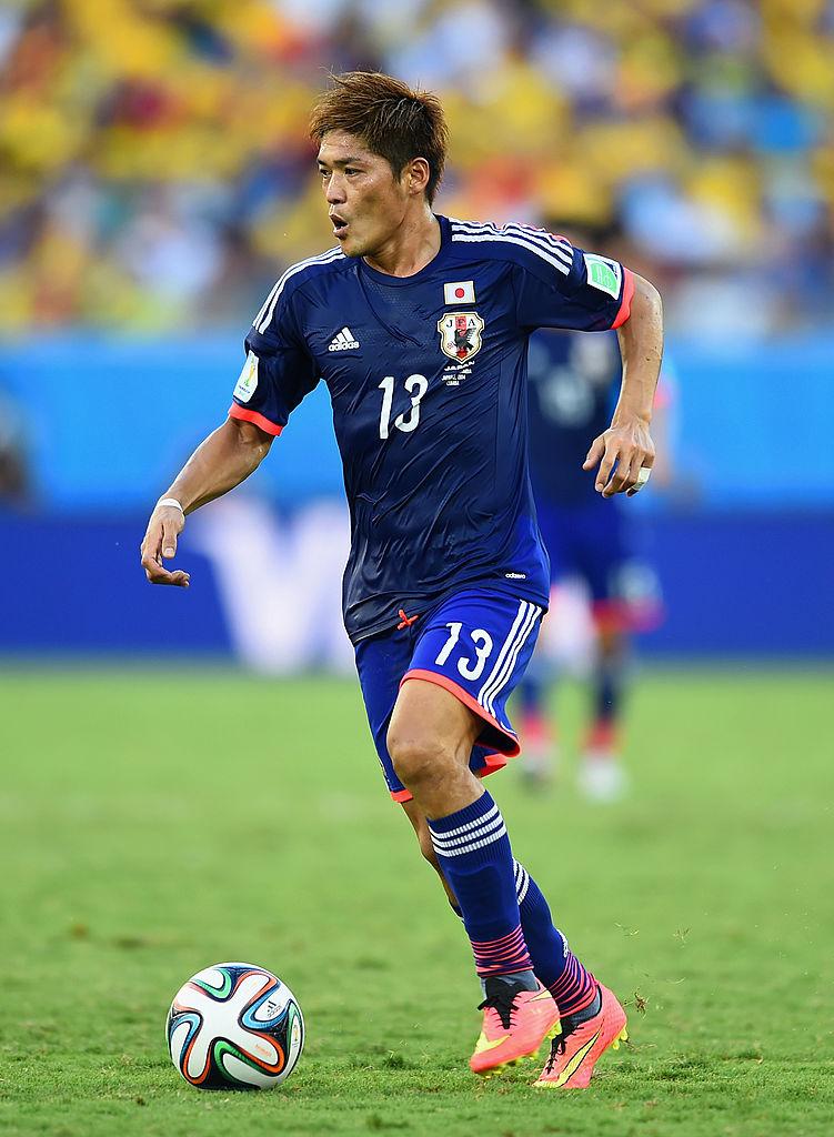 日本代表では60試合6ゴールであるが、ベスト16進出を果たしたワールドカップ2010では左サイドのウイングとして献身的なプレーに挑み、チームに大きく貢献。松井大輔とともに守備から攻撃への切り替えで重要な選手となった。