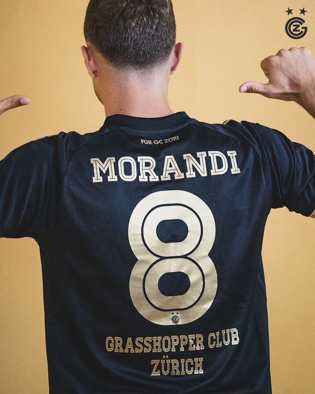 背中はご覧の通りの完璧なブラック&ゴールド。首元にはスローガン“Für GC Züri”(グラスホッパー・クラブ・チューリッヒのために)をレタリングする。