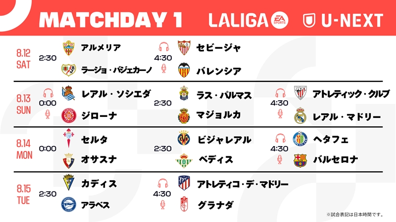 ラ・リーガ開幕節のカードは以下の通り。