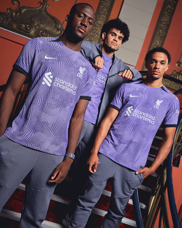 前述の通りキットカラーのパープルは2018-19シーズンのアウェイユニフォーム以来の採用。ただし今回の淡い色合いとは異なり、当時は濃いパープルにオレンジを合わせるというビビッドなデザインだった。
