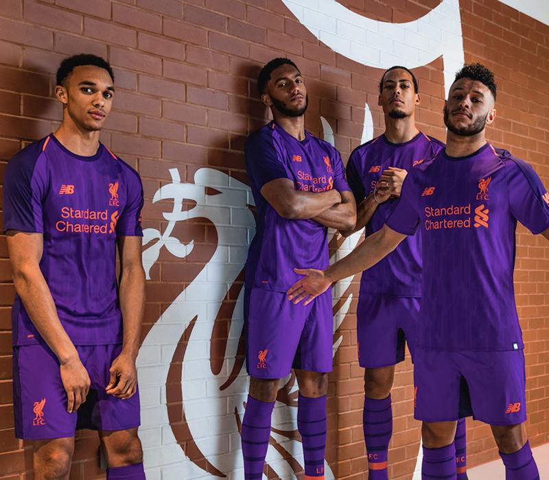 リヴァプールにこの系統色のユニフォームはGKモデルを除けばほとんど無い。18-19アウェイユニフォームの他には12-13サードユニフォームくらいで、実はレアなキットカラーである。