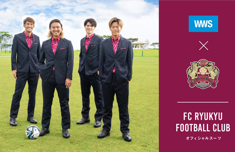 WWS×FC琉球 オフィシャルスーツは『WWS』のオンライショップ内特設ページにて販売中(FC琉球のオンラインショップでも販売中)。