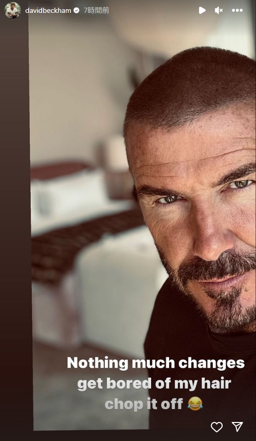 髪をバッサリに切り、坊主に!?泣き笑いの絵文字に「何も変わらないよ、髪に飽きたら切る」とのキャプションをつけている。