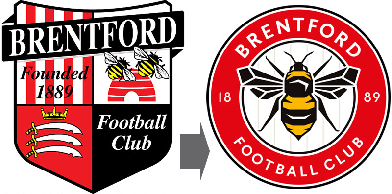 ブレントフォード(イングランド)は2017-18シーズンからエンブレムのデザインを変更。4分割柄の上にやや傾き加減でチーム名を配するスタイルから、中央に蜂を描いた丸型へとデザインを刷新した。