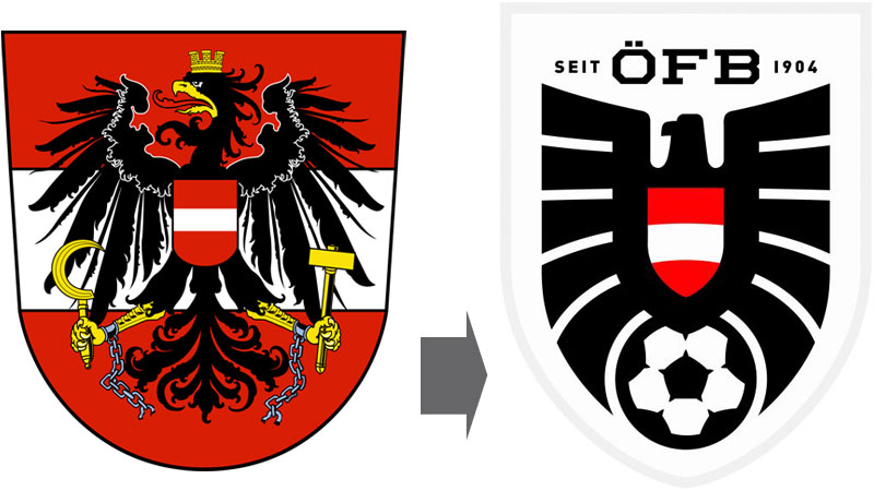 オーストリア代表は長きにわたり国章の黒鷲を、デザインほぼそのままでユニフォームの胸に取り付けてきた。この国章は国の歴史そのものでもあり、威厳に満ち溢れたデザインはユニフォームファンの間でも好評だった。