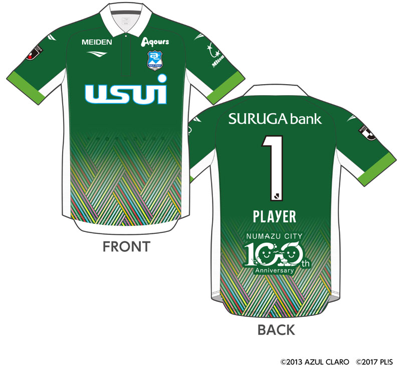 GKユニフォームは静岡県東部にある愛鷹山の恵みである沼津茶のグリーンを基調に、FP用と共通の「沼津垣」をデザインする。