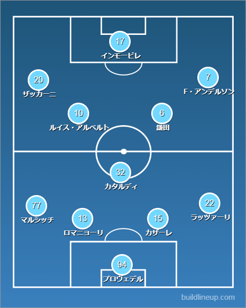 鎌田はこれまでウルグアイ代表MFマティアス・ベシーノがプレーすることが多かった右のインサイドハーフに入る。右サイドバックはマヌエル・ラッツァーリとエルセイド・ヒュサイとのローテーション。