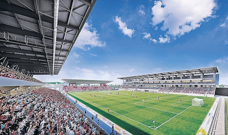 24年2月ごろの併用開始を目指す、Jリーグ・ツエーゲン金沢の新たなホームスタジアム。