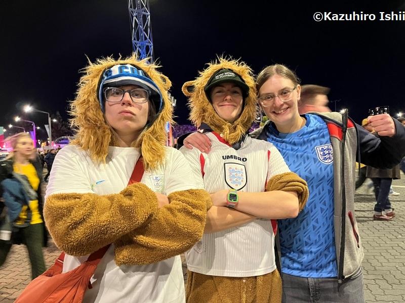 75,000人を超える大観衆の約5割から6割が女性という日本では味わえない空間は、歓声が大きいだけでなく音階が高い。マチルダズへの声援だけでなく、勝利したイングランド女子代表を讃えるスタンドの歌声も音程が高めなので、音全体に破裂するようなパワーがある。