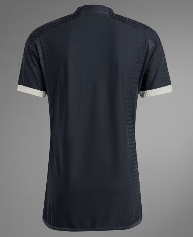 23-24新サードユニフォームはダークカラーを基調色に採用。ブラックにも見える色はダークグレー(チャコール)で、差し色にアイボリーホワイトを配する。