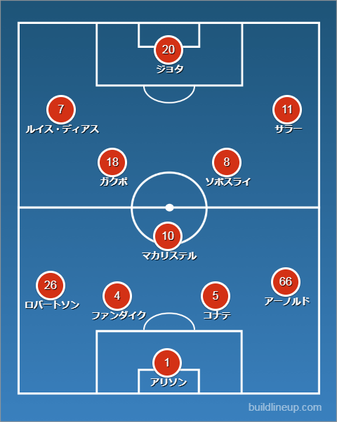 前半18分にルイス・ディアスのゴールで先制するも、同点に追いつかれ、そのままのスコアで終了。