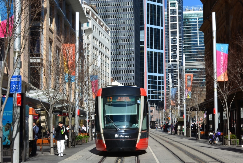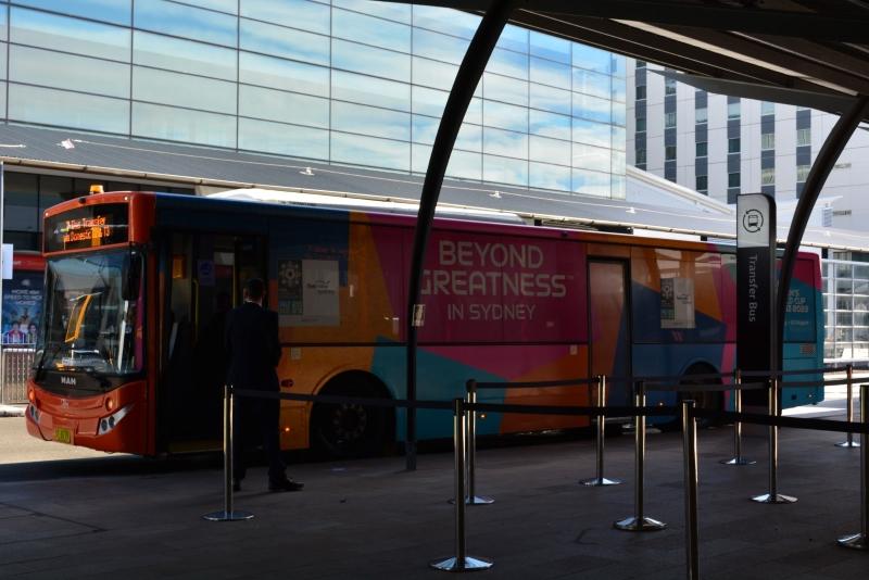 大会ビジュアルでラッピングされたライトレール(路面電車)やバスも運行している。駅には「行け、マチルダズ」のポスターが貼られている。