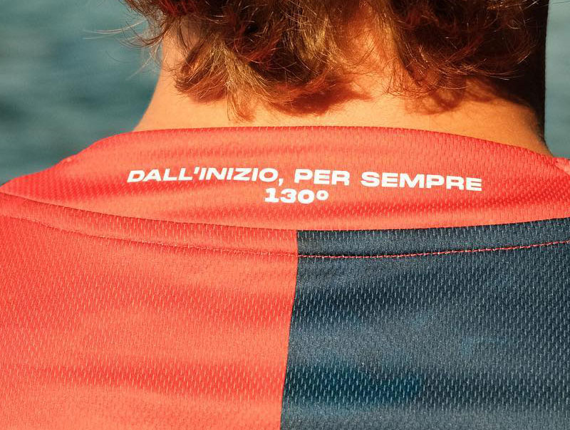シャツ全体を覆うグラフィックは、ホームタウンのジェノバが所属するリグーリア州を象徴するリグーリア海に触発され、海面や波のような模様をデザインしたものだ。