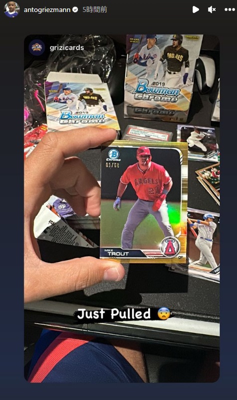 「Grizi Cards」という専用アカウントも持っているほどのコレクターである彼は、MLBロサンゼルス・エンゼルス大谷翔平のレアカードを引き当てたことが話題になった。