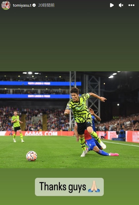 また、この試合では選手たちがティンバーのユニフォームを掲げる場面があったが、冨安は手を合わせる絵文字3つで彼へのエールも送っている。