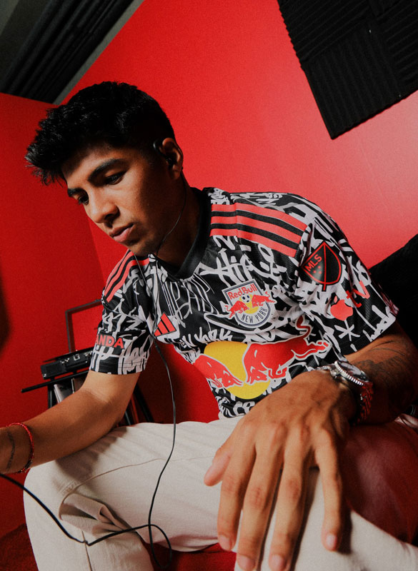 建物や電車などニューヨークの街中で見られる“落書き”風グラフィックが、ピッチ上でも鮮烈な存在感!