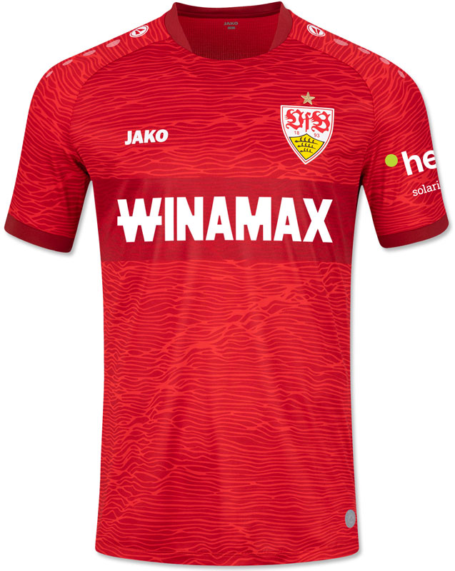 23-24新アウェイユニフォームは、ほぼレッド一色のデザイン。独特のグラフィックはクラブの故郷バーデン=ヴュルテンベルク州に敬意を表したものだという。