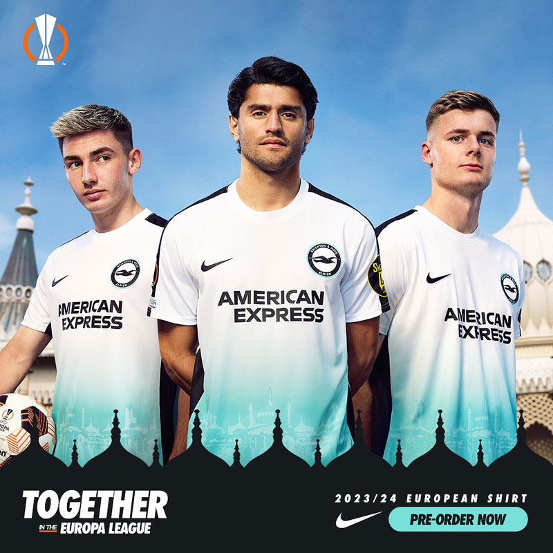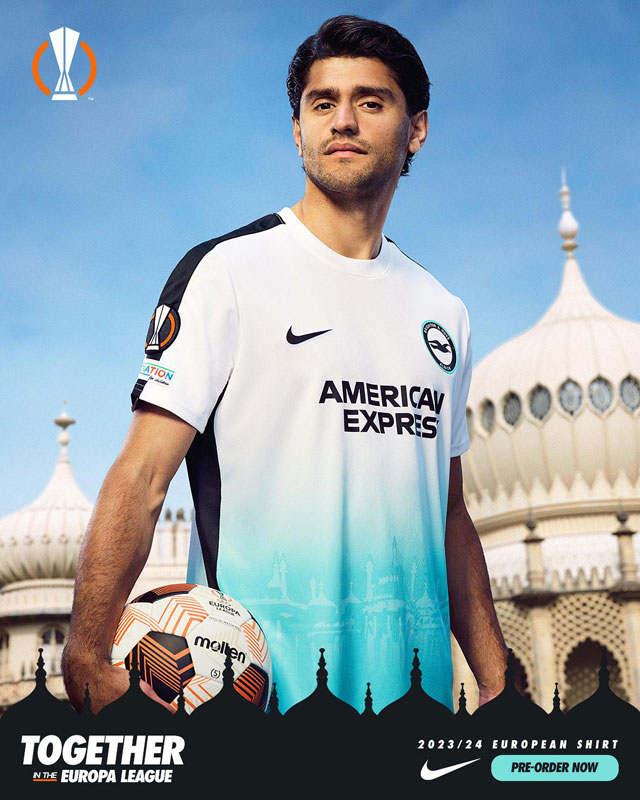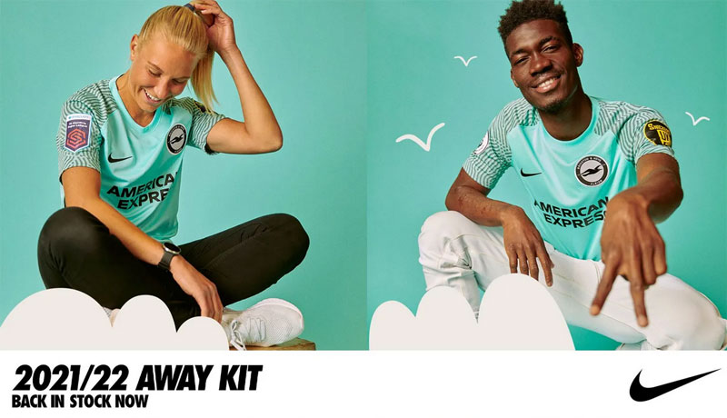 街の海岸沿いの「手すり・レール」の色であるターコイズは、21-22シーズンのアウェイユニフォームの基調色。このシーズンは9位でフィニッシュし、ブライトンが史上初めてプレミアリーグのトップ10入りを果たしている。