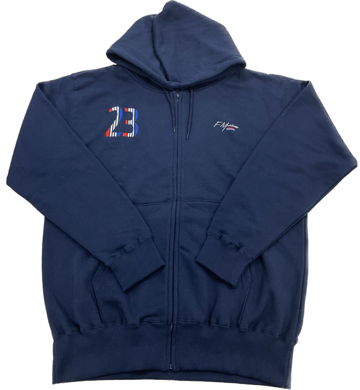 右胸に所属選手のナンバーを刺繍するフルジップタイプのパーカー。色はネイビーとグレーの2色展開。