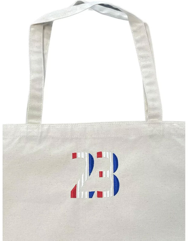 所属全選手のナンバーに対応した綿素材のトートバッグ。色はナチュラルとネイビーの2色展開。