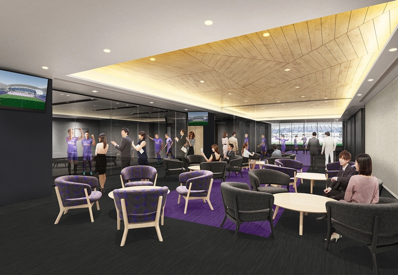 注目は1階のトンネルラウンジ。入退場する選手をガラス越しに見ることができる特別感のある空間を整備される。