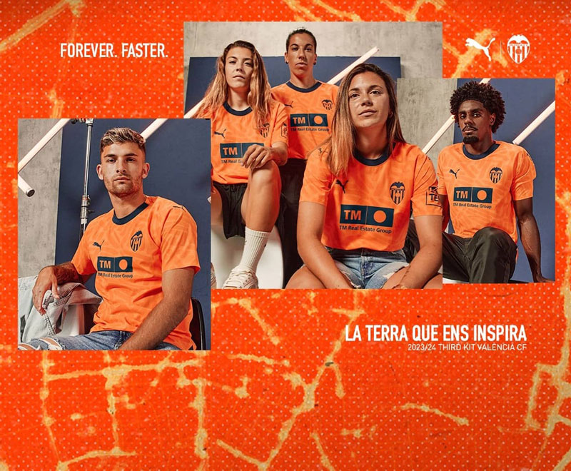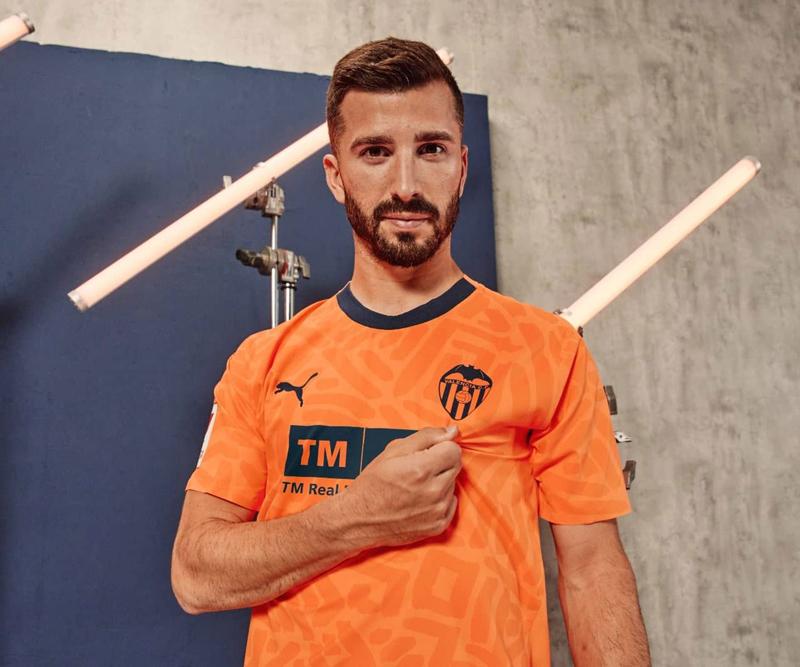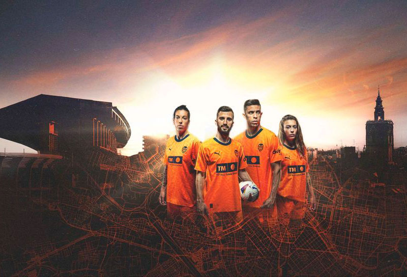 今回のデザインは幾何学的なグラフィックが特徴的だが、その正体はバレンシア地域の地図。クラブと地域のつながりを表現したもので、このビジュアルがデザインコンセプトをそのまま表している。