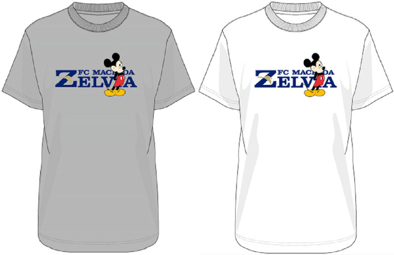 胸にチームのロゴとミッキーマウスをデザインするTシャツ。色はグレーとホワイトの2色展開。