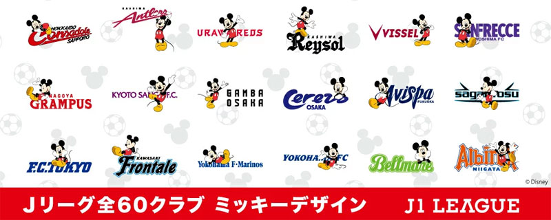 J1リーグ全18チームのミッキーはこんな感じ!湘南ベルマーレのロゴはミッキーマニアの琴線に触れそう。