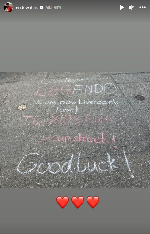 その際、近所の子供たちが「LEGENDO(レジェンドと遠藤)」というメッセージを書いてくれたことも話題になった。