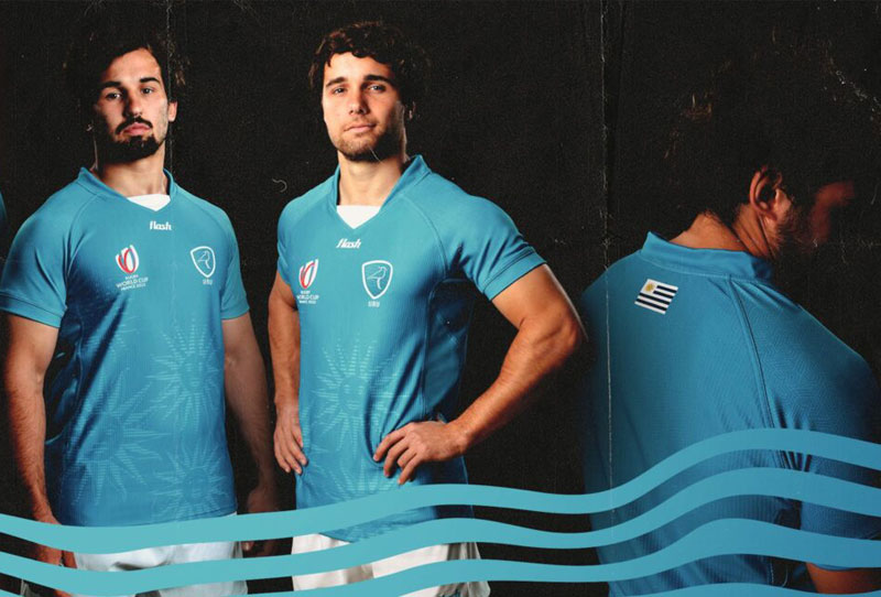 ラグビーウルグアイ代表はサッカー代表と同じくスカイブルーを基調としたデザイン。サッカーよりはいくらか色味が濃いかもしれないが、国の象徴「5月の太陽」をプリントするなど共通点は多い。