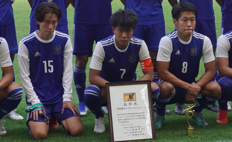 この日右サイドバックで先発したJ1鹿島アントラーズ内定の関西学院大DF濃野公人(4年、大津高出身)は緻密なビルドアップ、正確なクロス、惜しいシュートを放つなど、守備だけではなく攻撃面でも存在感を発揮。だが全国大会初勝利から決勝まで進出した富士大の勢いを食い止めることはできなかった。