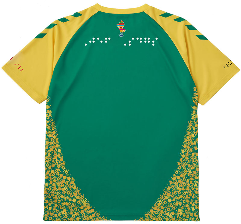 今回発表となった特別シャツは、胸部、袖、背中など各部に点字をデザインする。