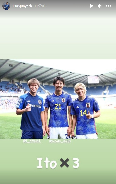 試合後には伊東純也が「Ito 3」として3ショットをSNSに投稿していた。