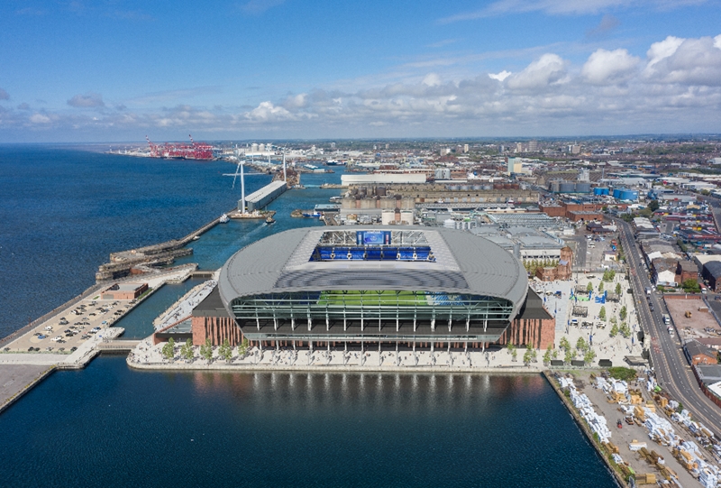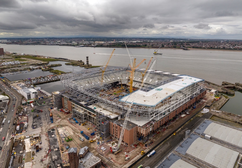 工事は2021年8月にスタートし、来年2024年に完成予定。エヴァートンは2024-25シーズンから新スタジアムをホームとして使用する。