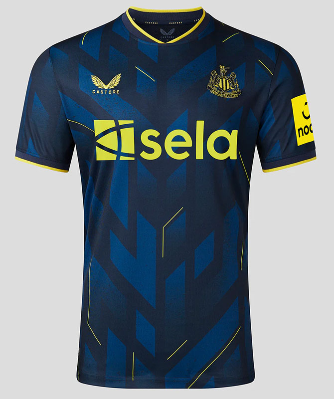 23-24新サードユニフォームは濃淡ネイビーでV字を描き、発色の良いエレクトリックイエローをアクセントカラーに採用。ややビビッドな配色はニューカッスルの“得意技”だ。