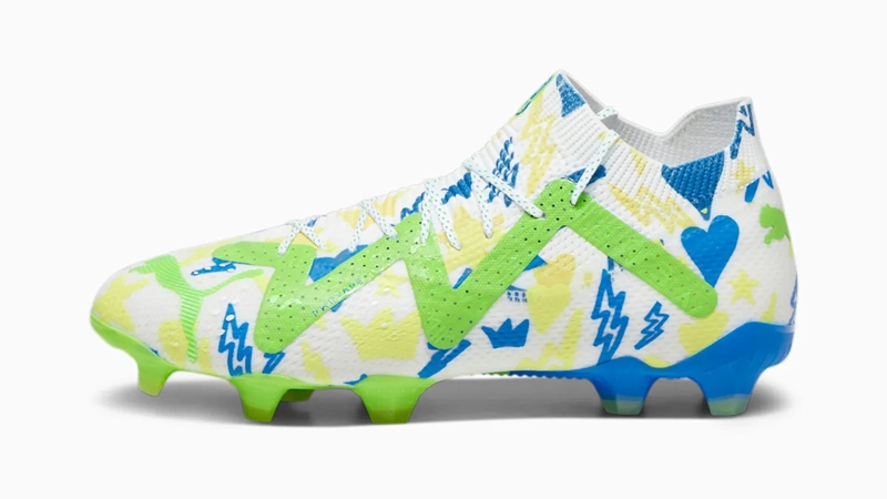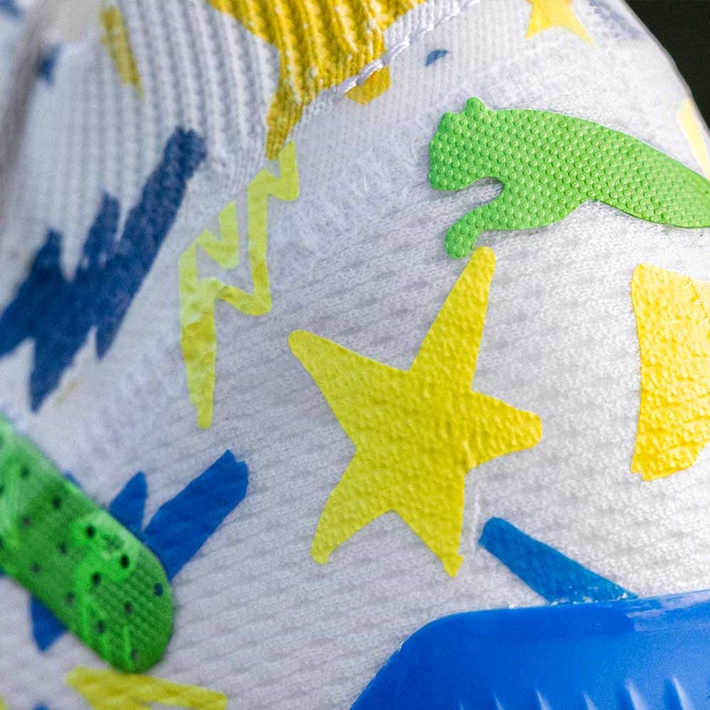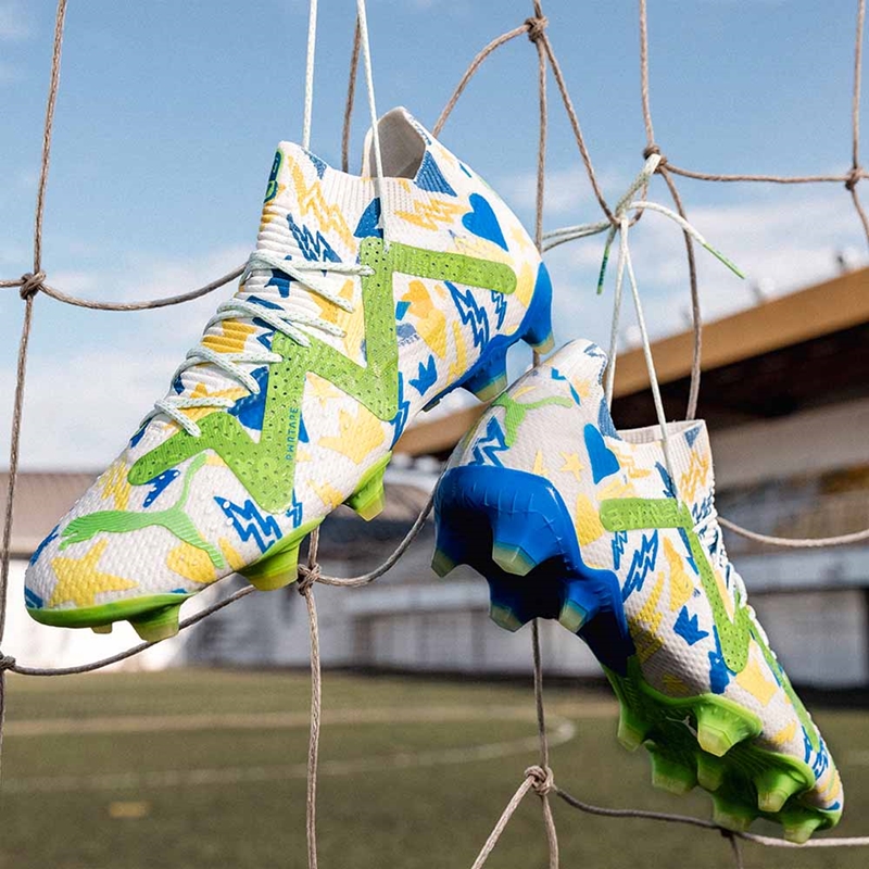 Pumaの最新スパイク『フューチャー アルティメット』をベースに、子供らしい様々なモチーフが取り入れられた素敵なデザインだ。