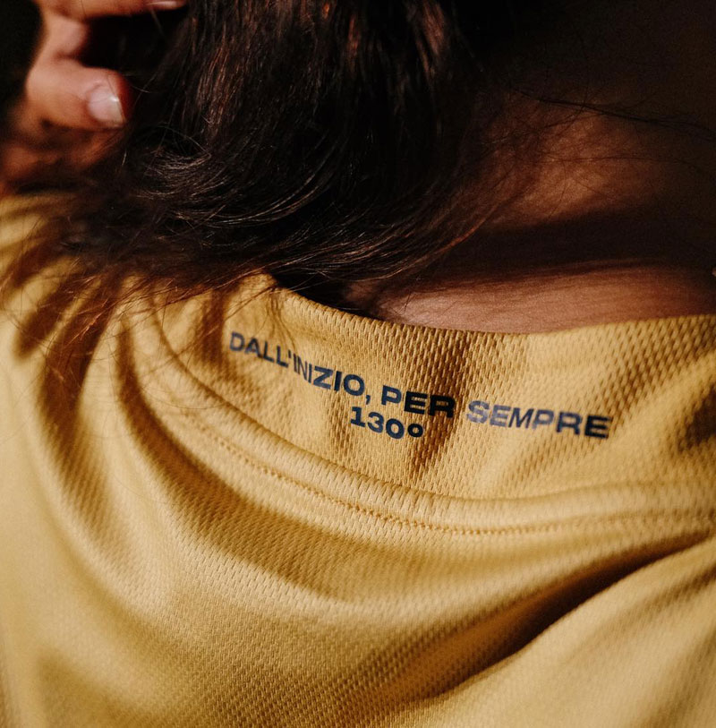 背面の襟部分にはクラブへの永遠の忠誠を誓う言葉と130周年の文字を刻む。1893年9月7日にクリケットと陸上競技のクラブとして創設されたジェノアは、このユニフォーム発表日に130周年を迎えた。