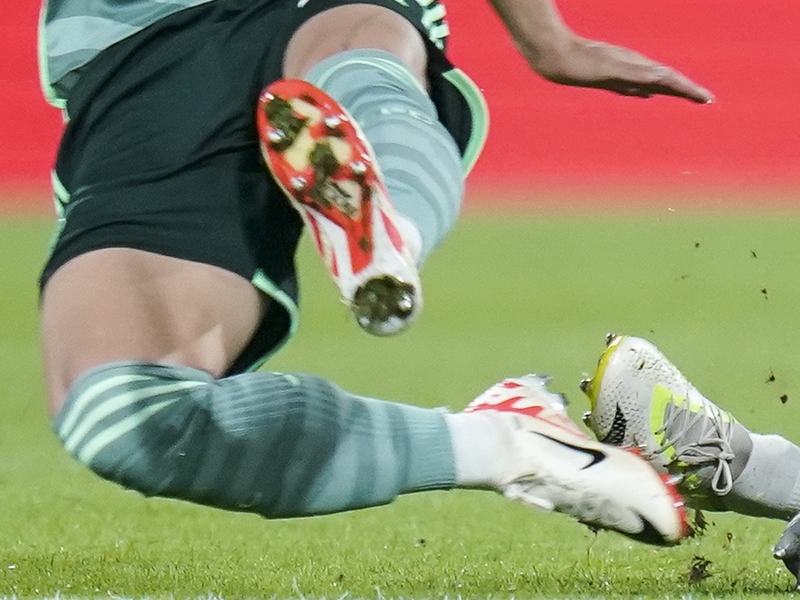 前田がどの試合でも基本的に銀色の取替式スタッドのあるSGモデルを選択しているのに対し、